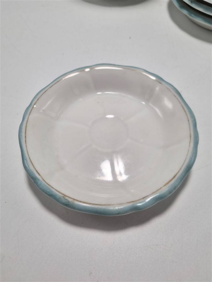 Coupelle en porcelaine de Limoges, blanche avec des liserés bleu et doré sur le pourtour.