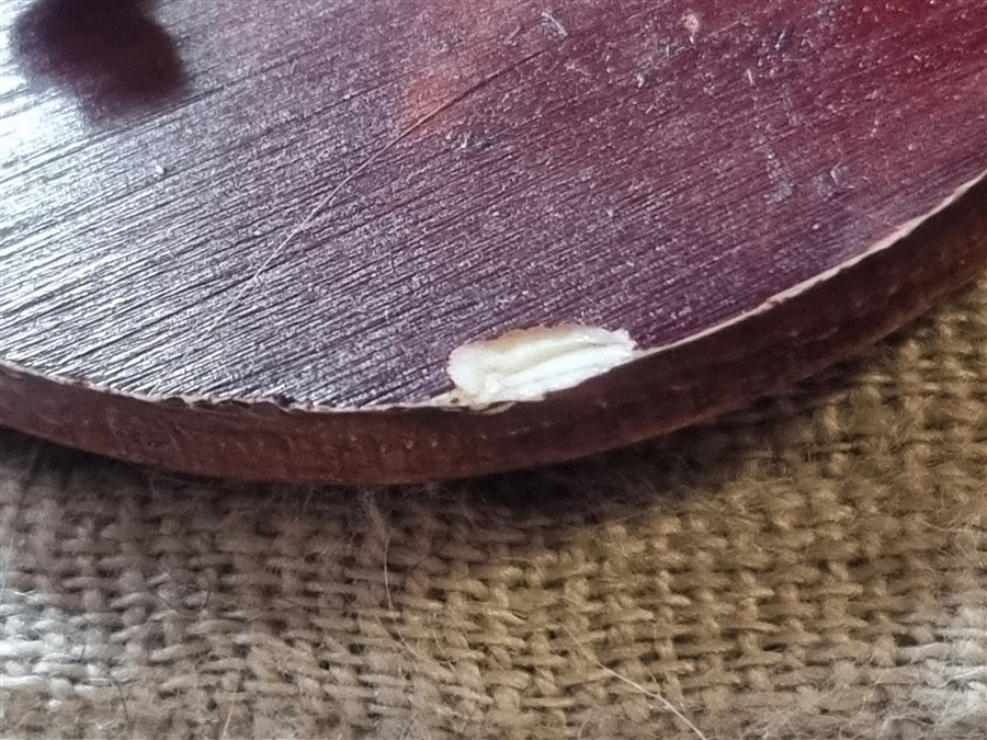 Elle présente de petits accidents sur le revers, voir photo.