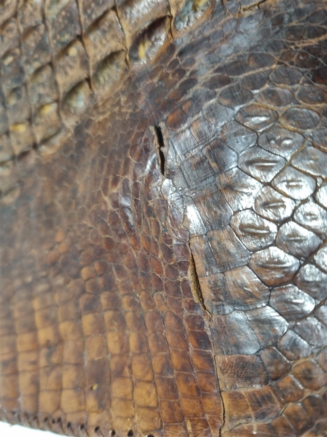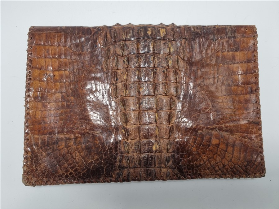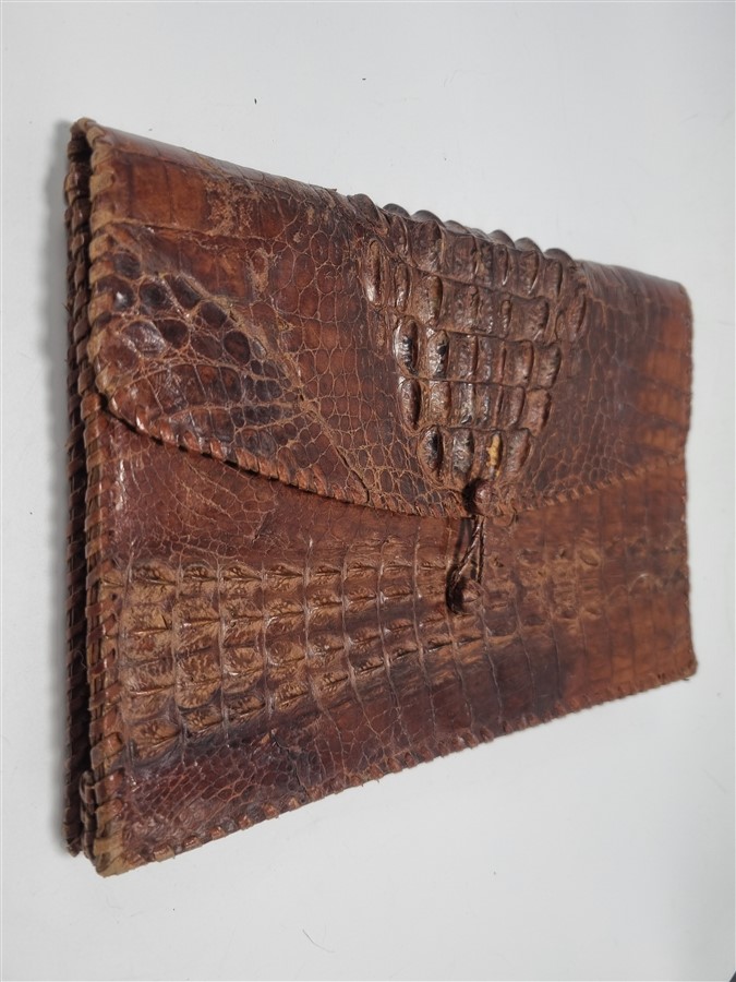Cette ancienne pochette en cuir de crocodile se tient à la main, idéale pour vous accompagner en soirée.