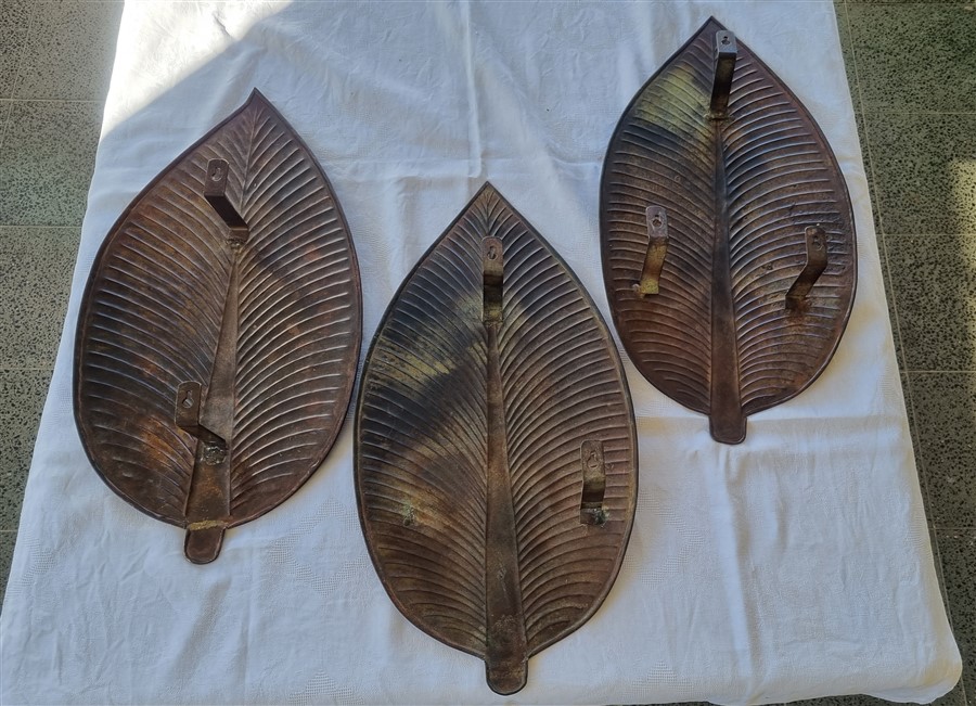 Trio de feuilles métal déco.